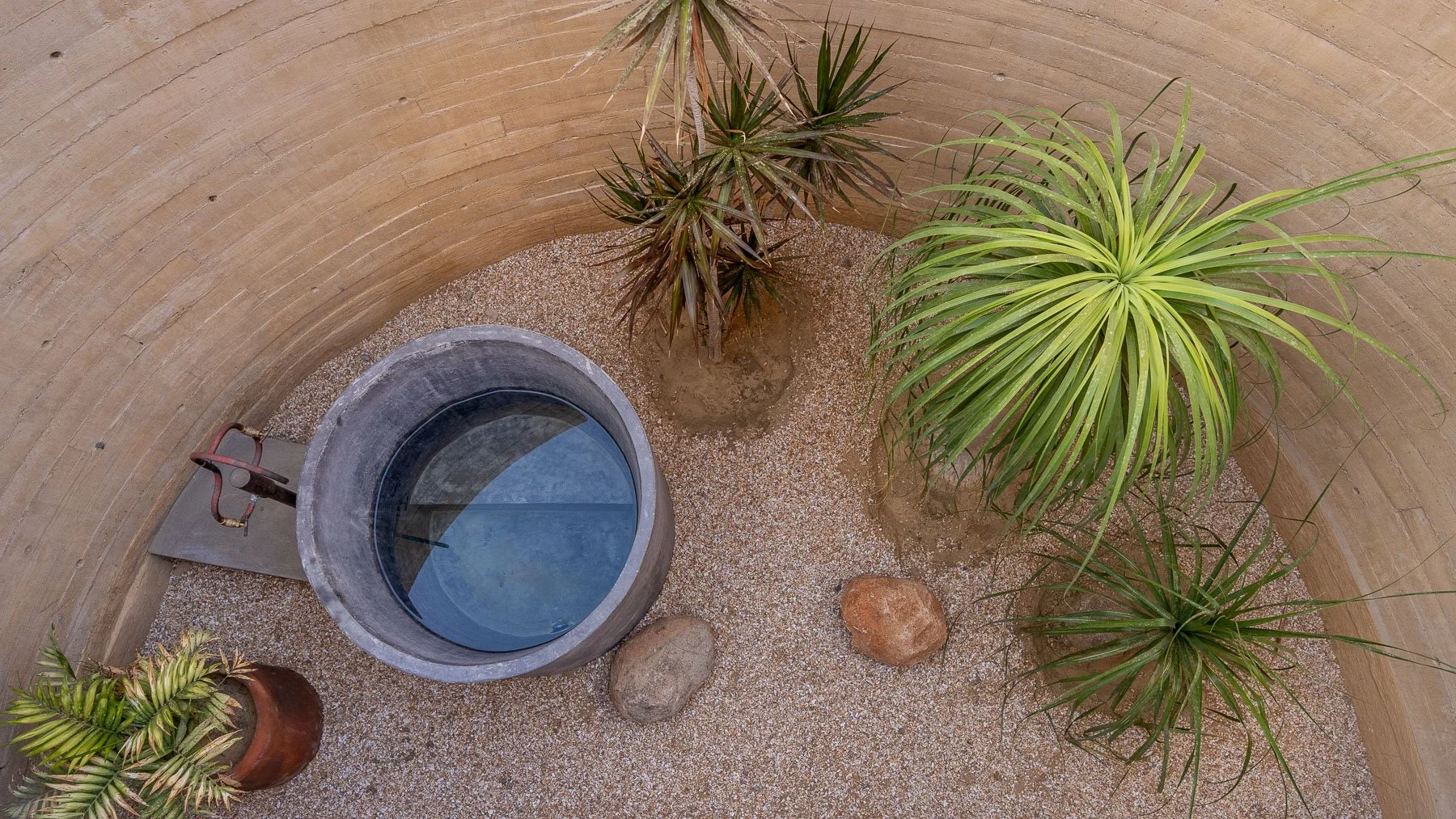 The architectural design began with one small idea: a bathroom with a glass wall which could open up into a small courtyard. The small courtyard idea then reminded us of James Turell’s Skyspace artworks, and we came up with the plan to put tubs in the courtyards so guests could soak and view the sky. One creative idea led to the next and soon, with the guidance of the brilliant architect Kevin Wickham, we had plans for a small hotel unlike any other.